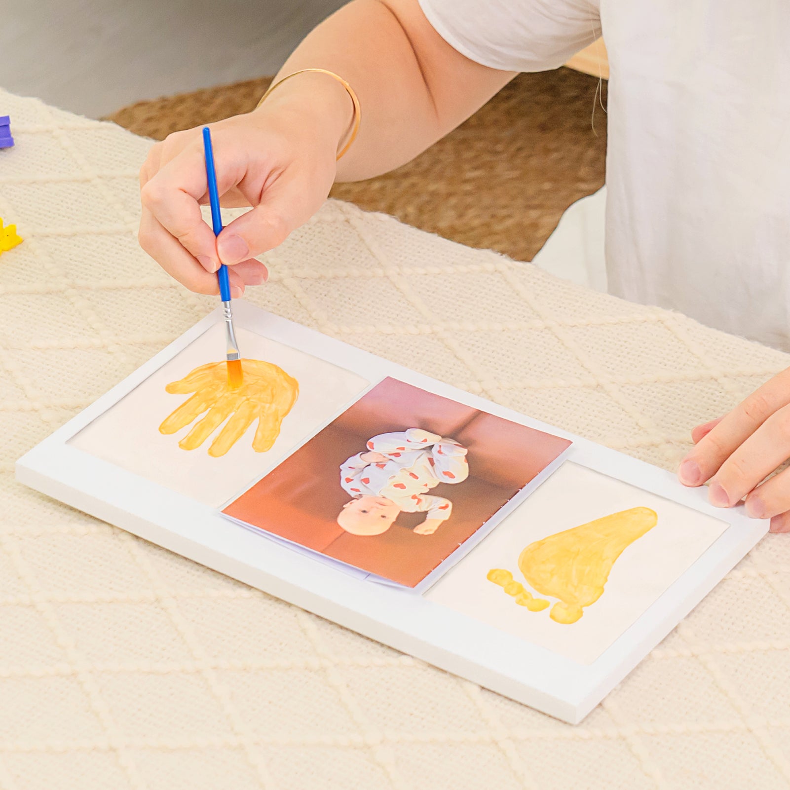 Personalizing your Handprint and Footprint Keepsake Frame Kit together with your child is a fun bonding activity. Paint/write/stamp your baby's name and/or date of birth onto the keepsake to create your very own unique DIY keepsake.