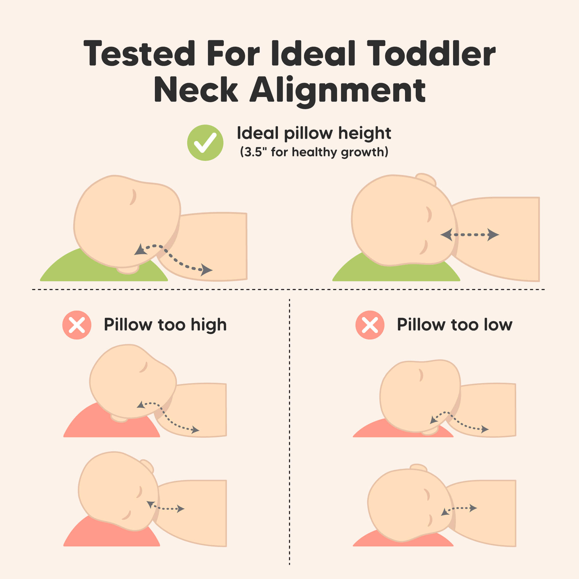 Both 13" x 18" (Standard) & 14" x 20" (Jumbo) pillows are sized perfectly for travel, school and home use, it is the perfect toddler pillow for your little one