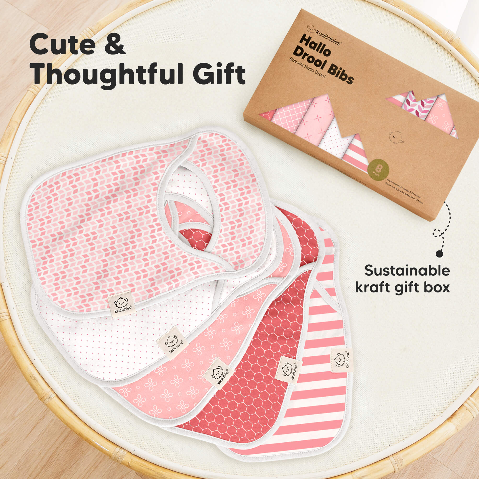 - 8-pack contemporarily stylish baby bibs that pair well with any outfit