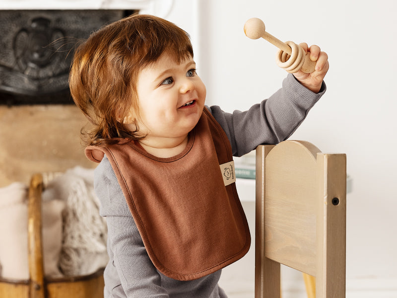 Featuring a unique pull-on lap shoulder design, the Hallo Baby Bib makes it easy to slip on over your baby's head, just like a t-shirt.
