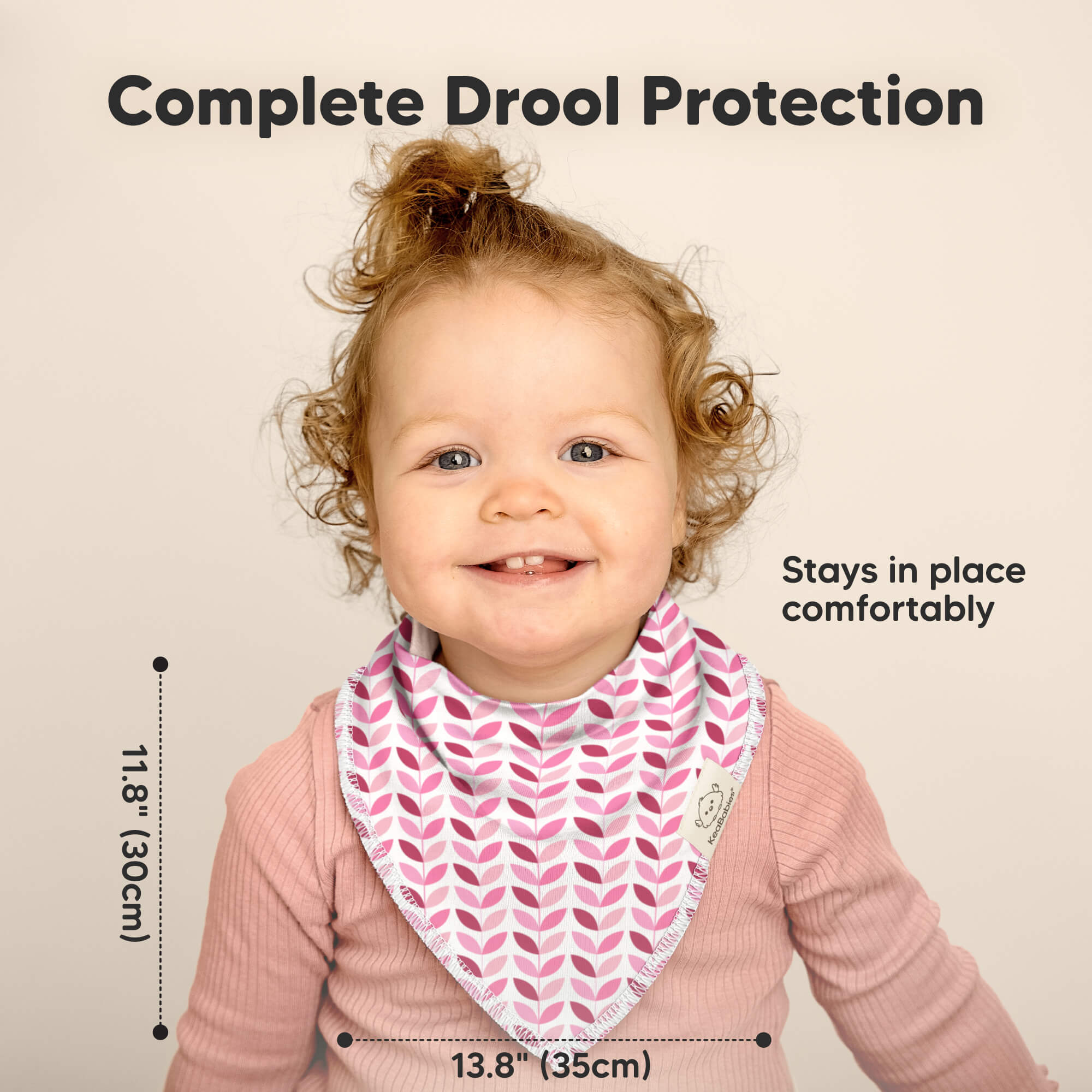 Our Bandana Bibs are designed with dual layers of extra-absorbent materials, it is easy to put on and comfortable to wear all day long. Suitable for heavy droolers and teething babies. Keep your baby feeling dry and fresh throughout...(See More)