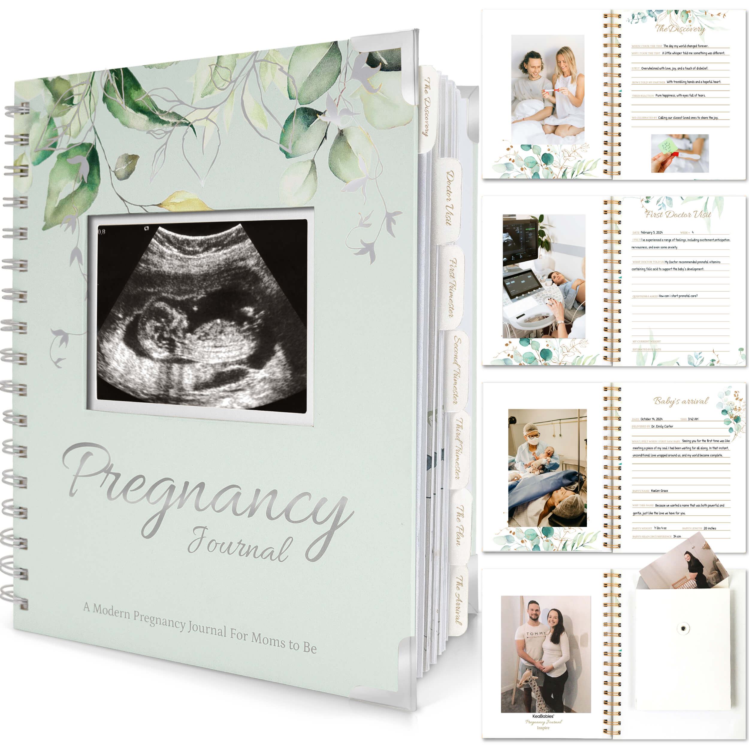 - 90 pages hardcover, 7.8x9" ring-bound pregnancy journal