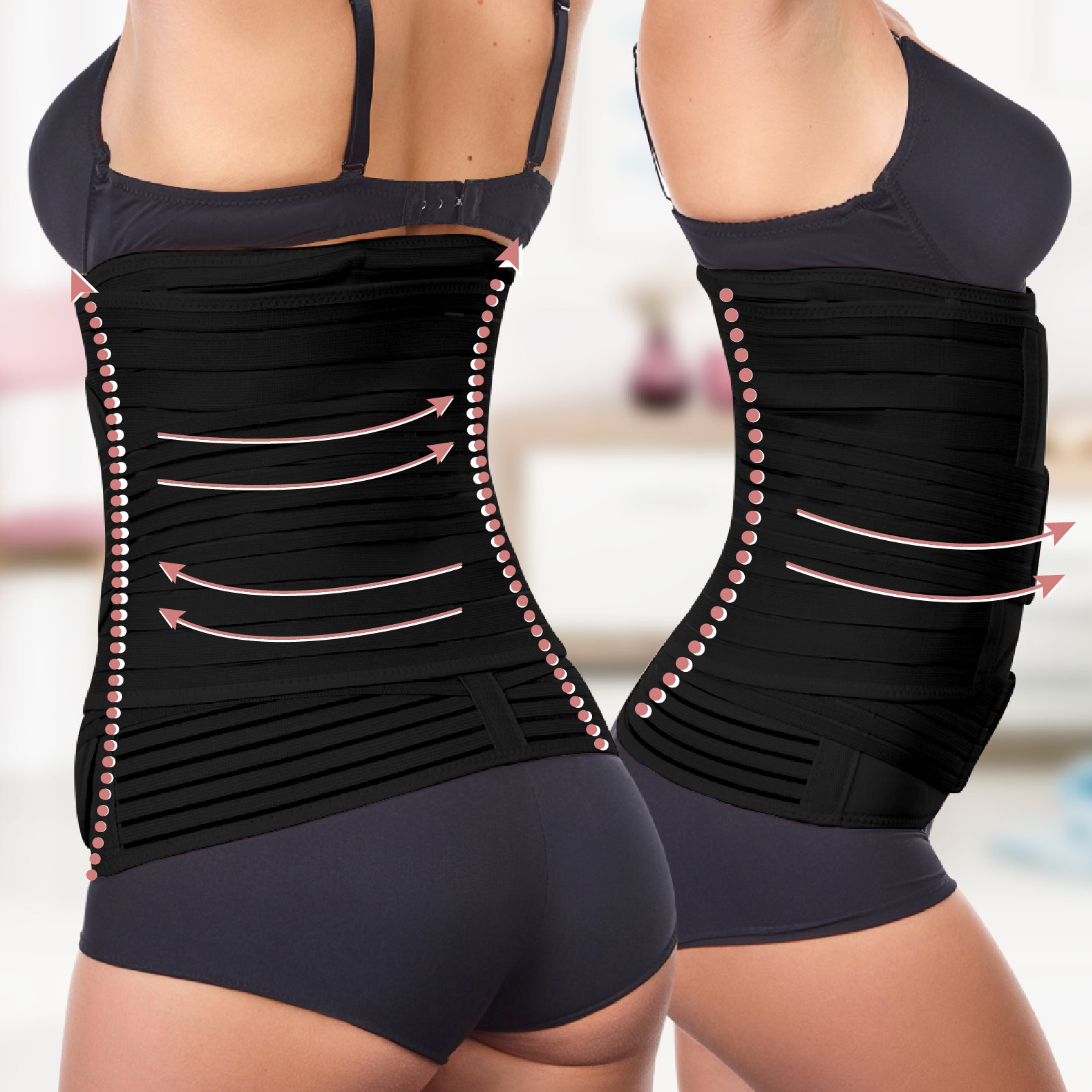 Now is the perfect time to wear all three: the Stomach Belt, the Waist Belt, and the Pelvis Belt. This combination will help tighten your pelvic joints, strengthen your core and help your body return to the pre-pregnancy state.