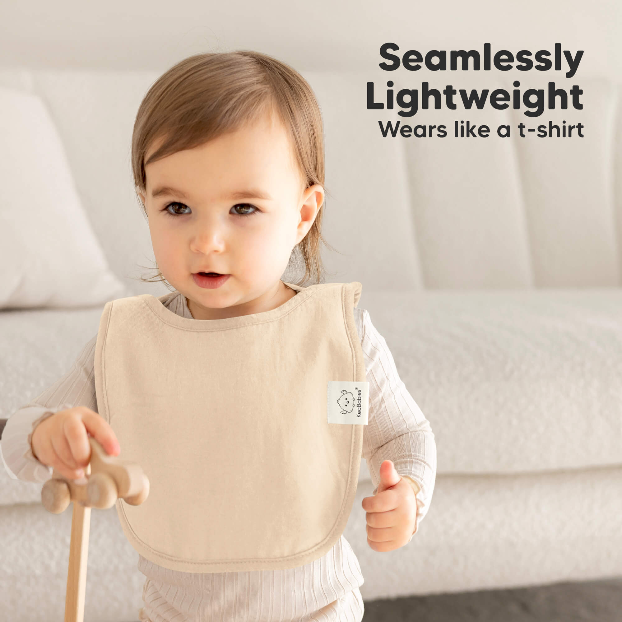 Featuring a unique pull-on lap shoulder design, the Hallo Baby Bib makes it easy to slip on over your baby's head, just like a t-shirt.