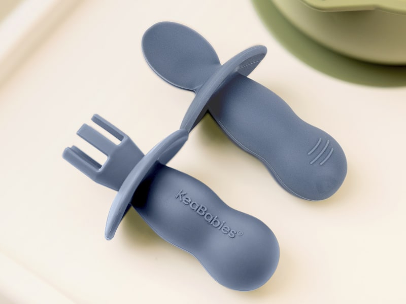 The KeaBabies Prep Baby Fork and Spoon Set is 100% food-grade and BPA-free, ideal for infants 6-18 months. These BLW baby utensils are dishwasher-safe, gentle on gums, and feature an anti-choke guard for safe food exploration. They promote independent...(See More)