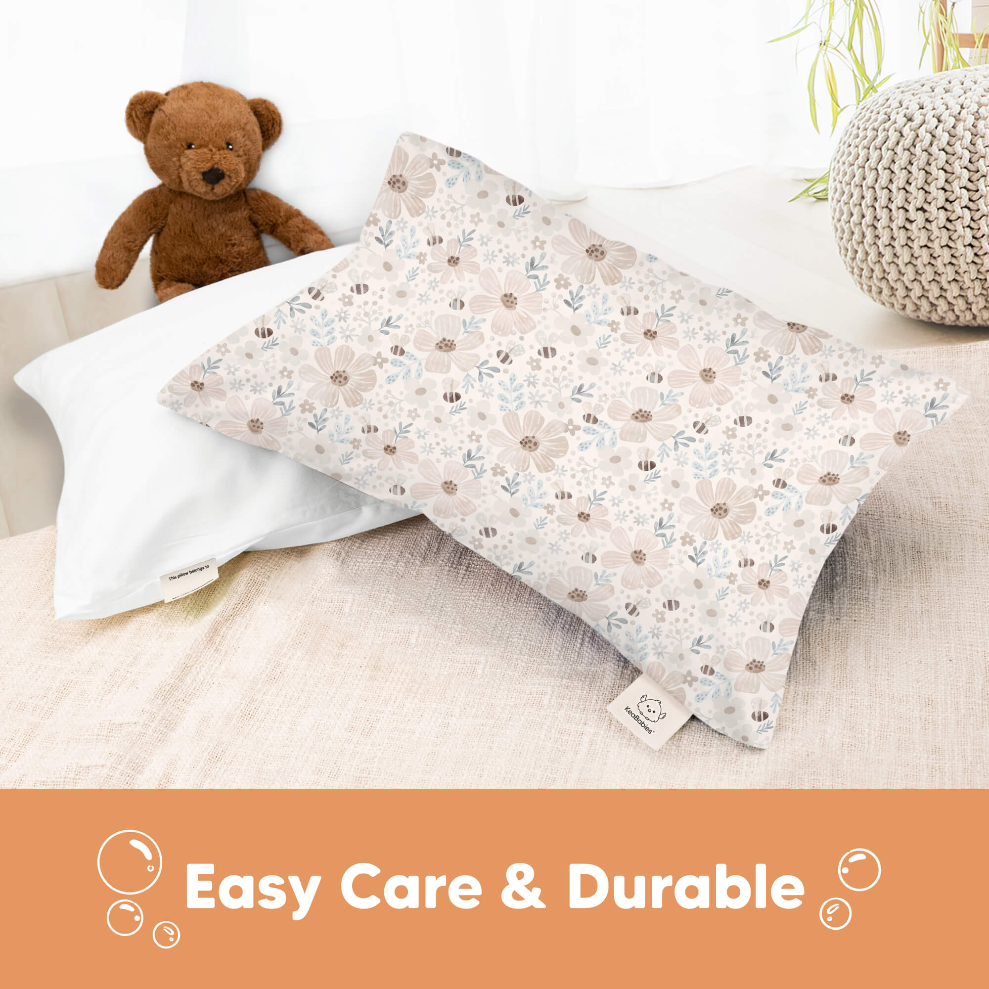 Our Toddler Pillowcase is machine washable and durable. It comes with an envelope closure for easy fitting and a tag to write your baby's name.