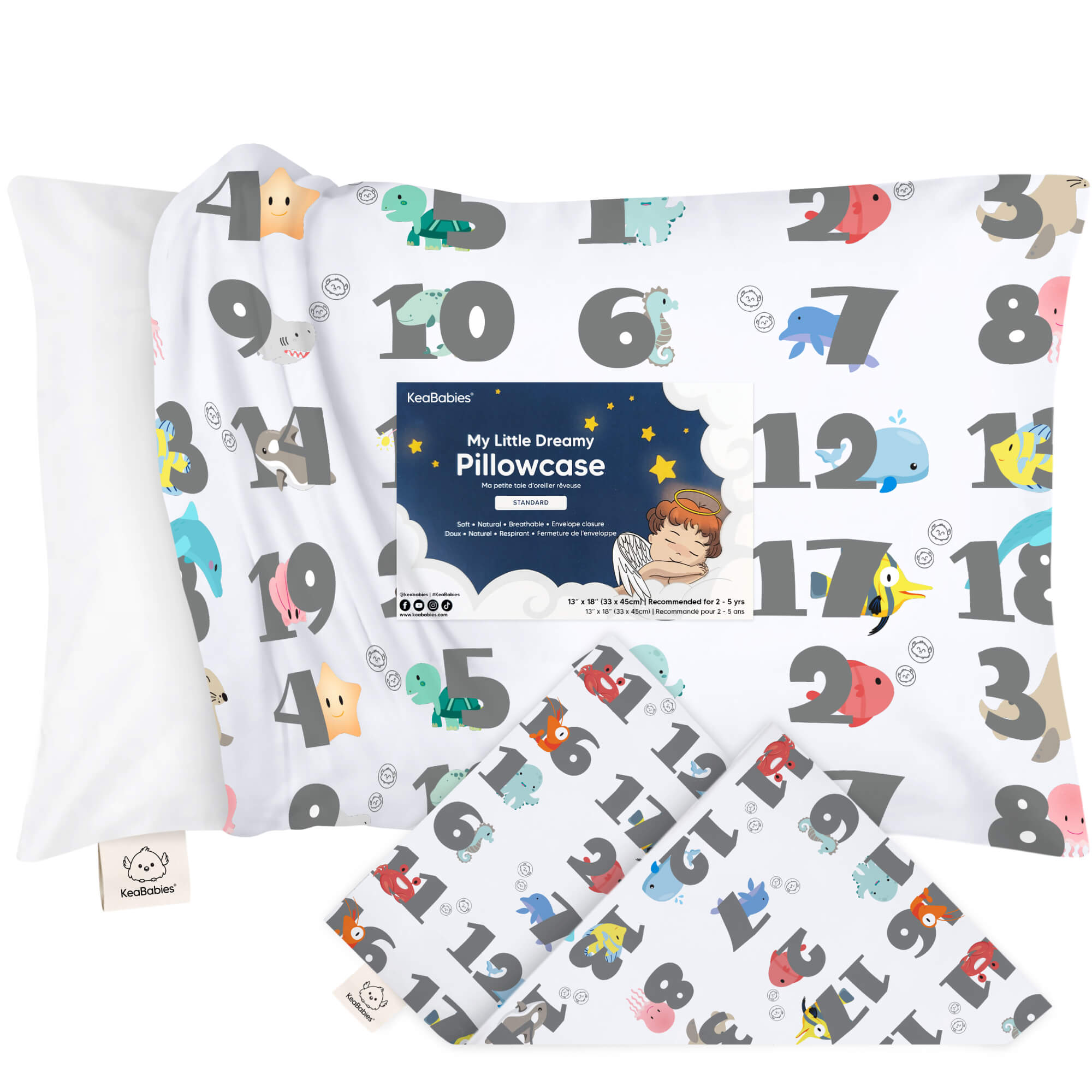Our KeaBabies pillowcases fit standard-size toddler pillows at 13X18 inches, it is the perfect companion for home, school, travel, school, and grandparents' place.