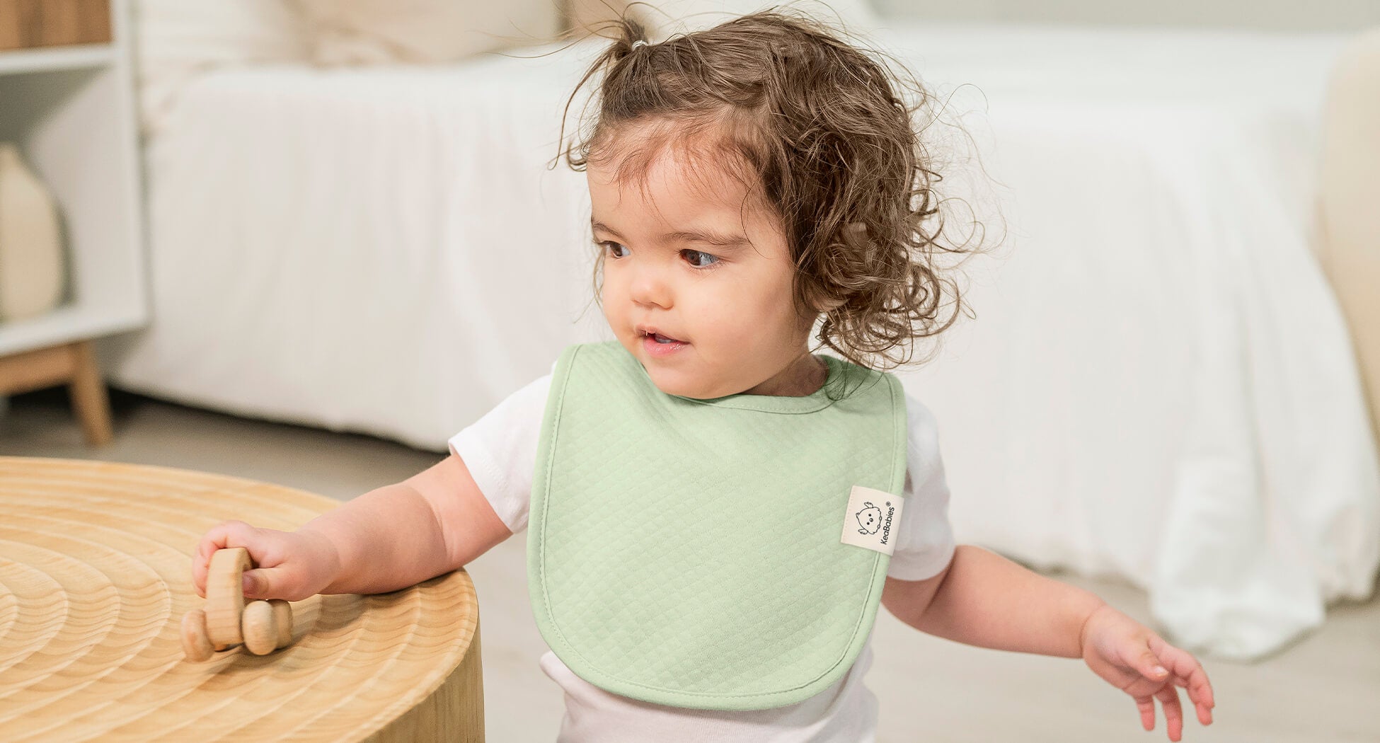 - Ultra soft, lightweight woven organic cotton bib for babies
