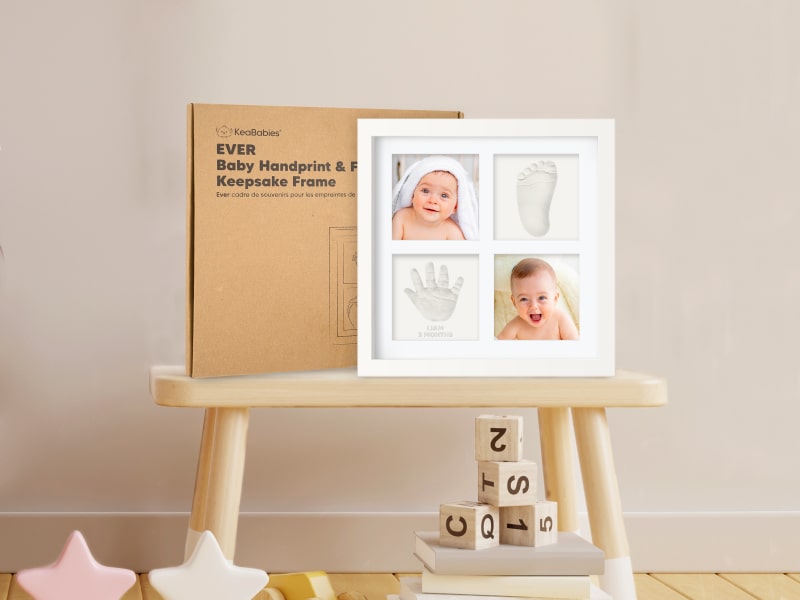 Product DescriptionCapture treasured memories with our Ever Baby Hand and Footprint Frame Kit. The premium wooden frame kit with crystal-clear glass cover, includes 4 colored cutouts, baby-safe air-dry clay and alphabet stamp to meet all your personalization needs. Showcase your...(See More)